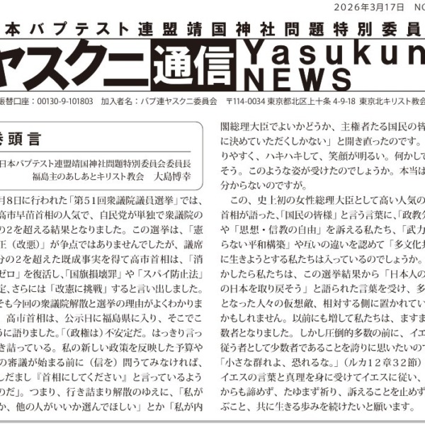 今日のスケジュール:全国発送、機関誌『バプテスト』4月号発行
