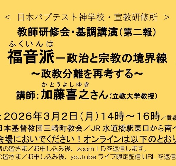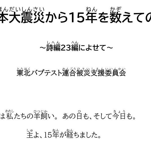12月27日 (金) 歴代上9章(ホセ11:1) バプテスト北九州地方連合宣教支援センターを中心とした連合各教会強化と連合活性化のため、また礼拝委員会新設準備のために。会長:谷本 仰(南小倉教会)